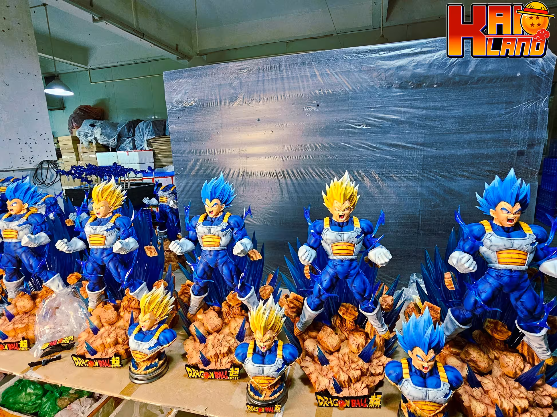 • Version A: Dark Blue Vegeta + pre-ordered bust Super Saiyan free (the floor can be illuminated, double head sculpture can be exchanged)